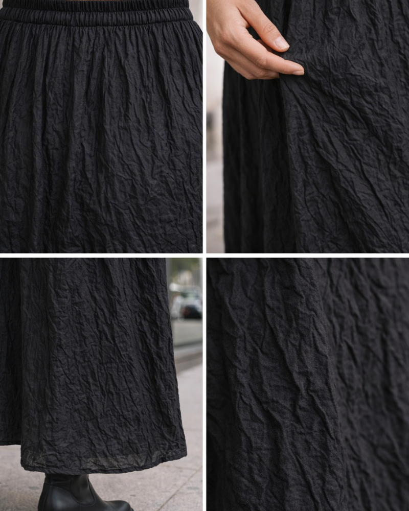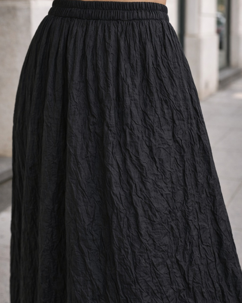 Pierre Luigi Kırışık Etek Siyah